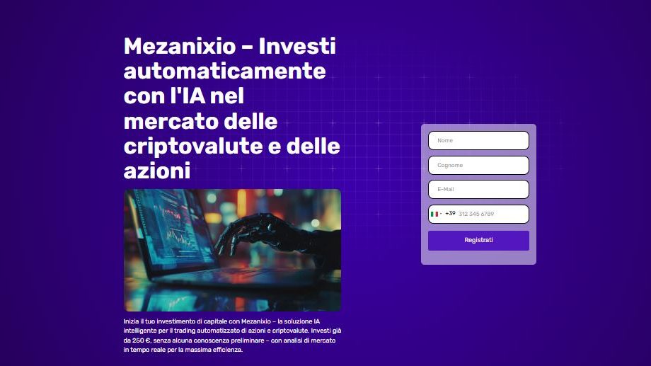 Mezanixio è una piattaforma di trading digitale progettata per offrire accesso rapido e professionale ai mercati finanziari. Il suo punto di forza risiede nella combinazione di tecnologie emergenti come: